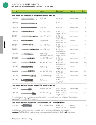 For Tapered Effect Implants, endosteal Ø 4.8 mm
