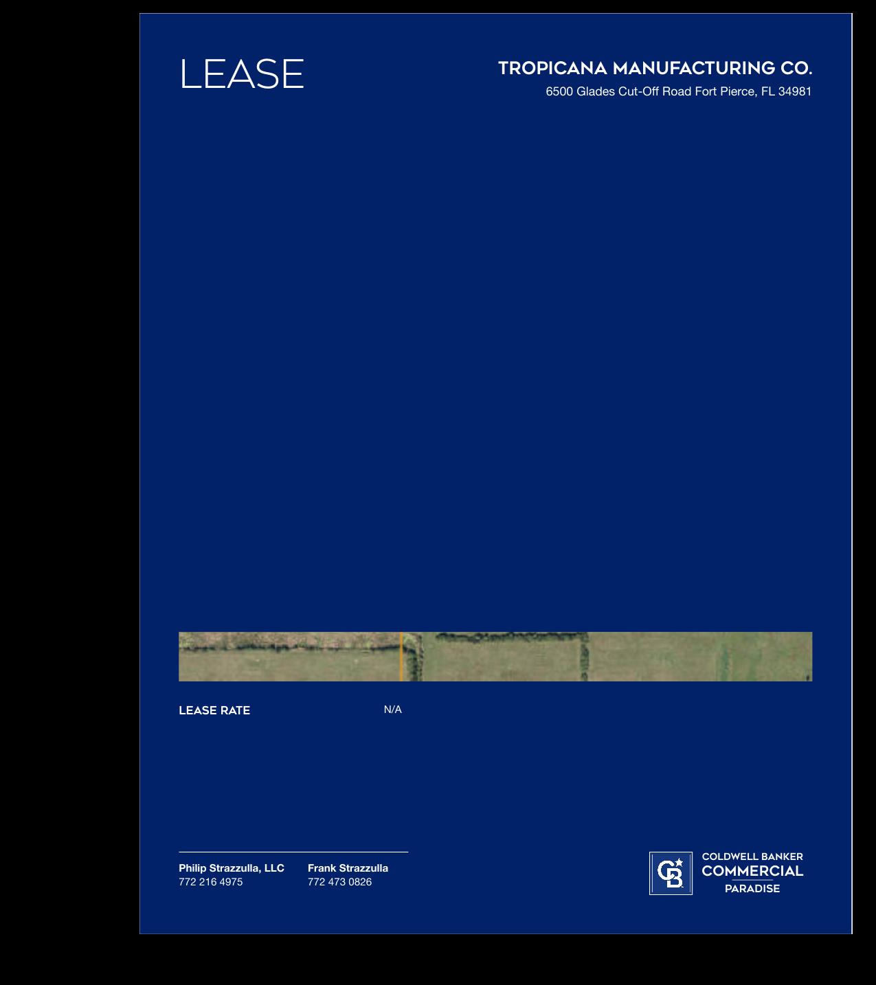 Philip Strazzulla, LLC 772 216 4975 Frank Strazzulla 772 473 0826 Coldwell Banker Commercial Paradise 12 Lease Tropicana Manufacturing Co. 6500 Glades Cut-Off Road Fort Pierce, FL 34981