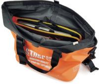 To prevent causing damage to seams, please avoid lifting Stream Trail bags by the black roll-down flap. (Carryall, Marche, Dry Tank, Roadster).