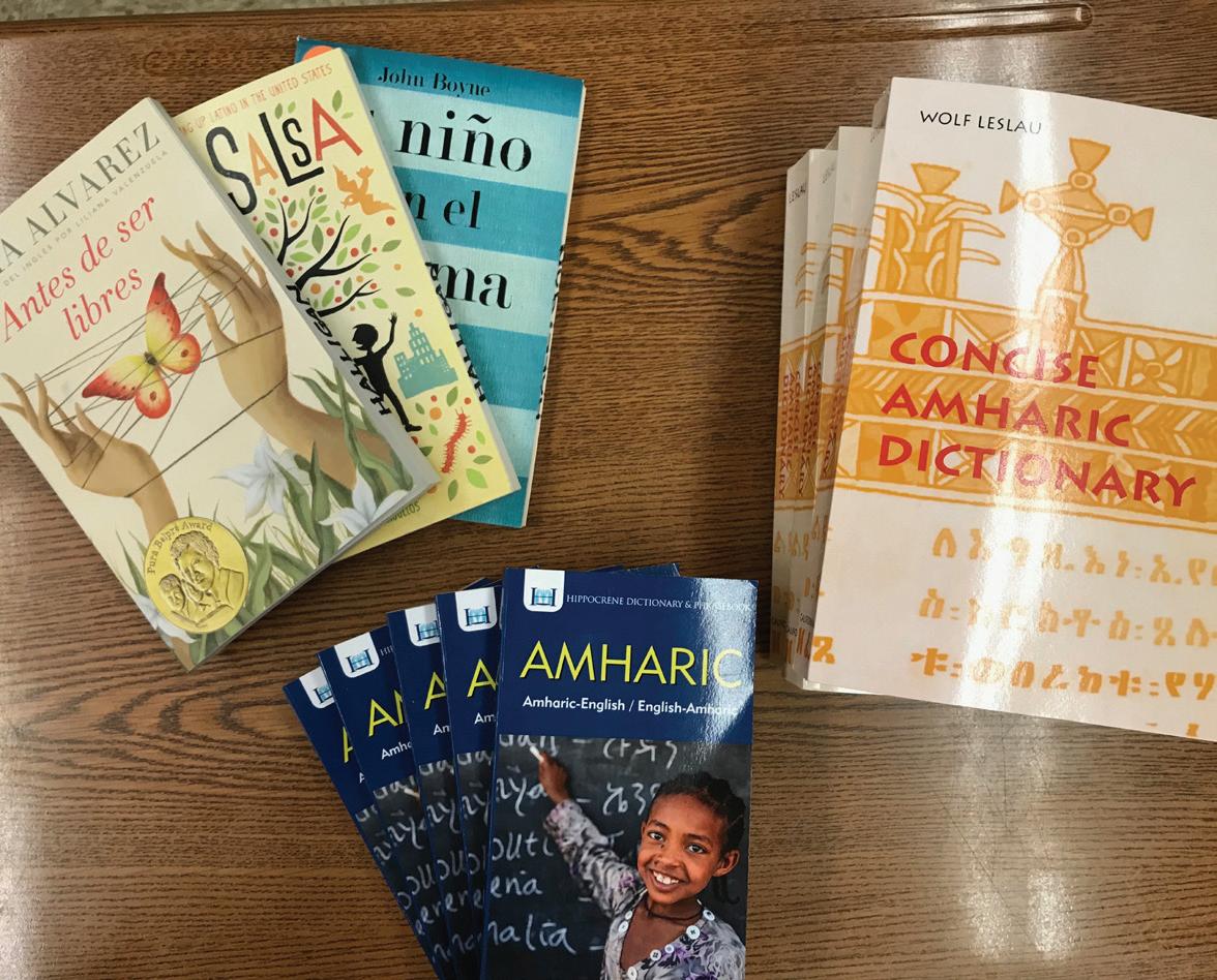 Halligan requested young adult books in Spanish, as the majority of her students are from Central America. She also asked for Amharic dictionaries for HMS’s growing population of Ethiopian-born students.