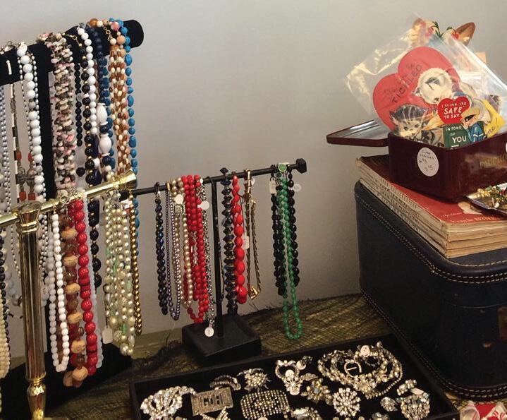 Smith had operated Cookie Wear in a couple of different Washington, D.C., locations and wanted a larger, more permanent space, so she asked Mintzer, who had previously sold her vintage goods at the former Polly Sue’s, in Takoma Park, to share the space. Mintzer has scoured auctions, estate sales and flea markets — even purchasing a few items from locals such as yours truly — to stock up on vintage dresses, outerwear, hats, jewelry and some secondhand art and housewares. And under the Nonasuch Vintage and Craft brand, she sells her own upcycled “assemblage” jewelry and soft dolls handcrafted from wool felt and antique fabric scraps. Her delicate handmade necklaces feature gemstones, brooches and trinkets from pieces that otherwise wouldn’t be wearable on their own.