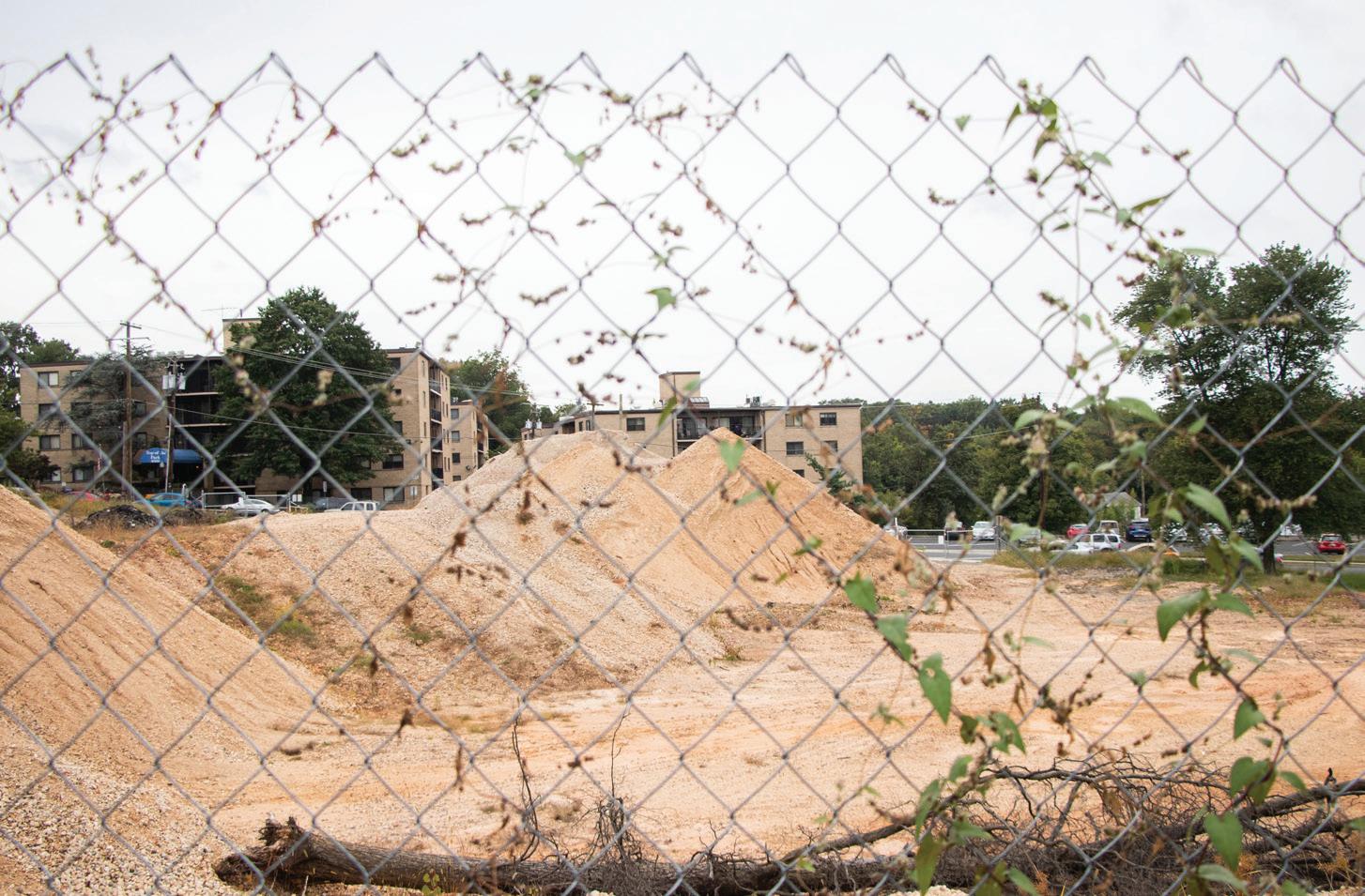 On the hill across the street from the parking lot, where an o ce building once stood overlooking the park, cone-shaped piles of dirt and crushed rubble have sat undisturbed since the summer.