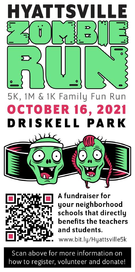 It’s nearing October and Halloween is just around the corner — along with another big event, the Hyattsville Zombie Run! The Zombie Run fundraiser will be held on Saturday, Oct. 16, at Driskell Park. The events are the 1 kilometer run (1k), the 1 mile run (1m), and the 5 kilometer run (5k). However, this isn’t a competitive race, so feel free to take your time. And as always, make sure to have fun!