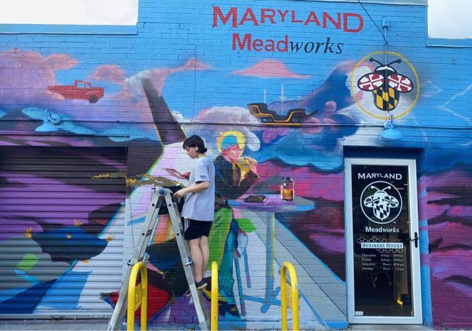 The muralists enjoyed the moment when they finished putting the Maryland Meadworks name on the building. “As a business owner myself … I know how important it is to have your name on your business,” Stowers said. “That was my favorite part of the experience.”