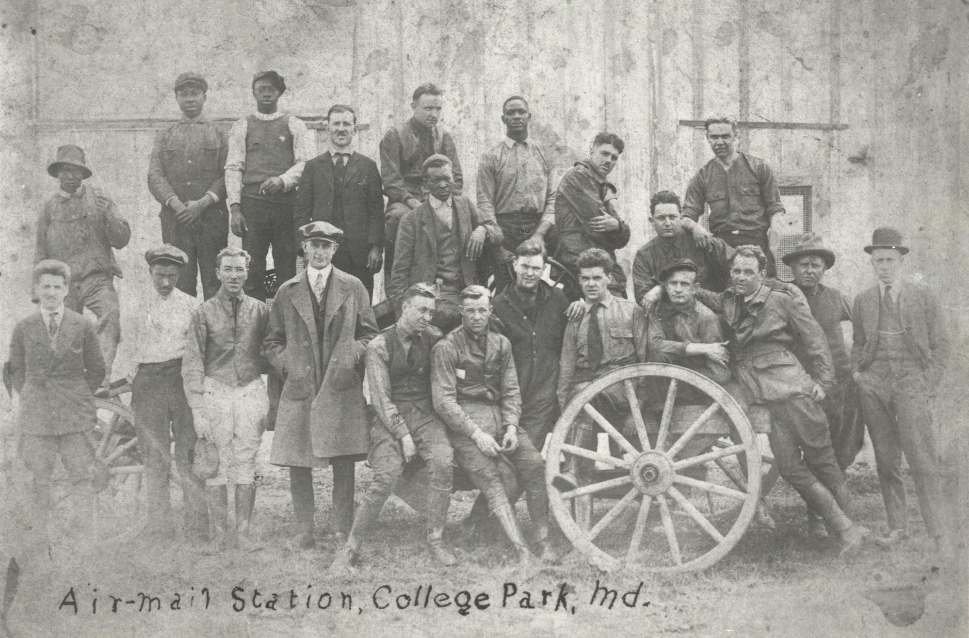 Last year, I wrote an editorial for the College Park Here & Now about a photograph in our “Delivering Airmail” exhibit, here at the College Park Aviation Museum. This photograph of the airmail crew at College Park Airport was taken around 1918 or 1919, and most of the individuals in it had been identified by name. As I shared in my editorial, I was alarmed that none of the African American crew members were also identified. I believe that as a historian with a cultural institution, I have a duty to uncover the full complexity of the past I strive to interpret. The gentlemen in this photo were part of a historic moment in aviation history with the U.S. Airmail Service, which began its civilian service with a flight from the College Park Airport, in 1918. I would see to it that their names and stories see the light of day. With the assistance from Violetta Sharp Jones, of the Lakeland Community Heritage Project, I was able to identify the crew members in the photograph, and it was great to put names to their faces. Then I worked, alongside my colleague James Schmitt to determine their contributions to both the airfield and the Lakeland community. Our work is