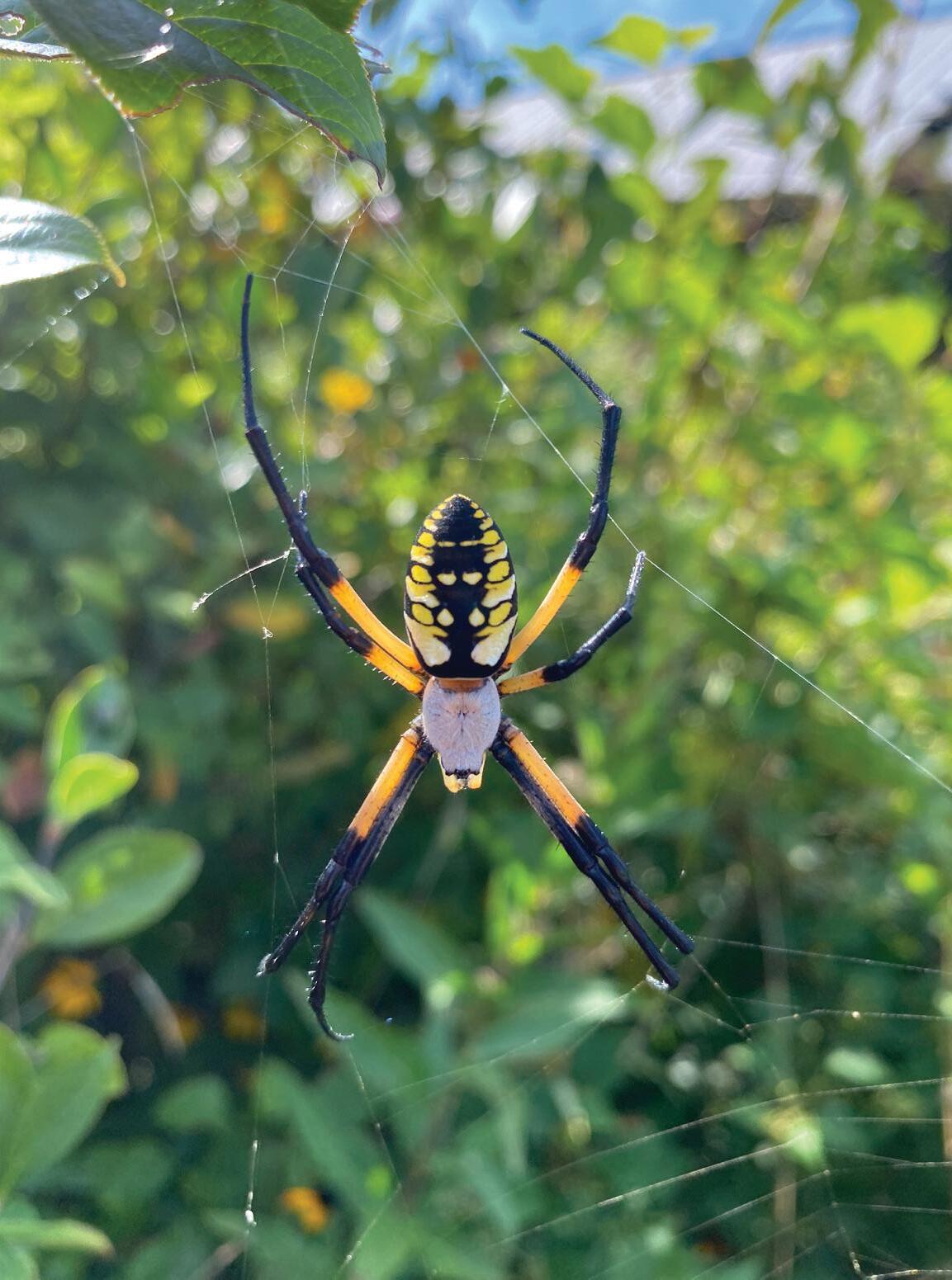 Our largest orbweaver, the yellow garden spider, can be up to 3 inches across if you count her leg span. RICK BORCHELT