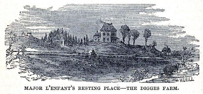 High on a hill, overlooking the newly designed federal city, which he had helped to conceive, lay the remains of Major Pierre Charles L’Enfant. His body was buried in a grove of newly planted red cedars, in the back garden of his dear friend William Dudley Digges on June 14, 1825. His remains would lie there, undisturbed and unrecognized, for nearly a century.