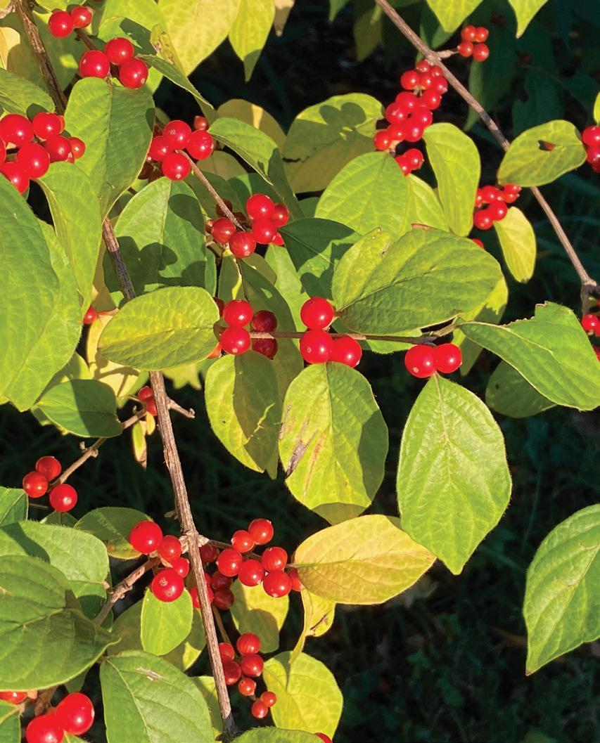 Chief among these bad berries producers are Asiatic bush honeysuckles, especially Amur honeysuckle (Lonicera maackii). These shrubs have red berries that they often bear in abundance. Many wildlife ecologists fear that bush honeysuckle berries act as bird crack — they are high in sugar but low in nutrition. Migratory birds require a diet higher in fats that fuel their long flights to Central and South America; in contrast to those sugary crack berries, na-