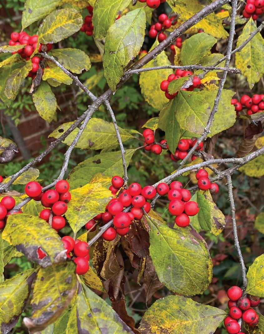 We have both evergreen and deciduous native hollies here. Our evergreen species, the American holly (Ilex opaca), is a common understory tree in Maryland, while our deciduous holly (Ilex decidua) — commonly known here as winterberry — is typically found in wetlands in our area. Berries of the deciduous holly are often featured in floral arrangements and wreaths this season.