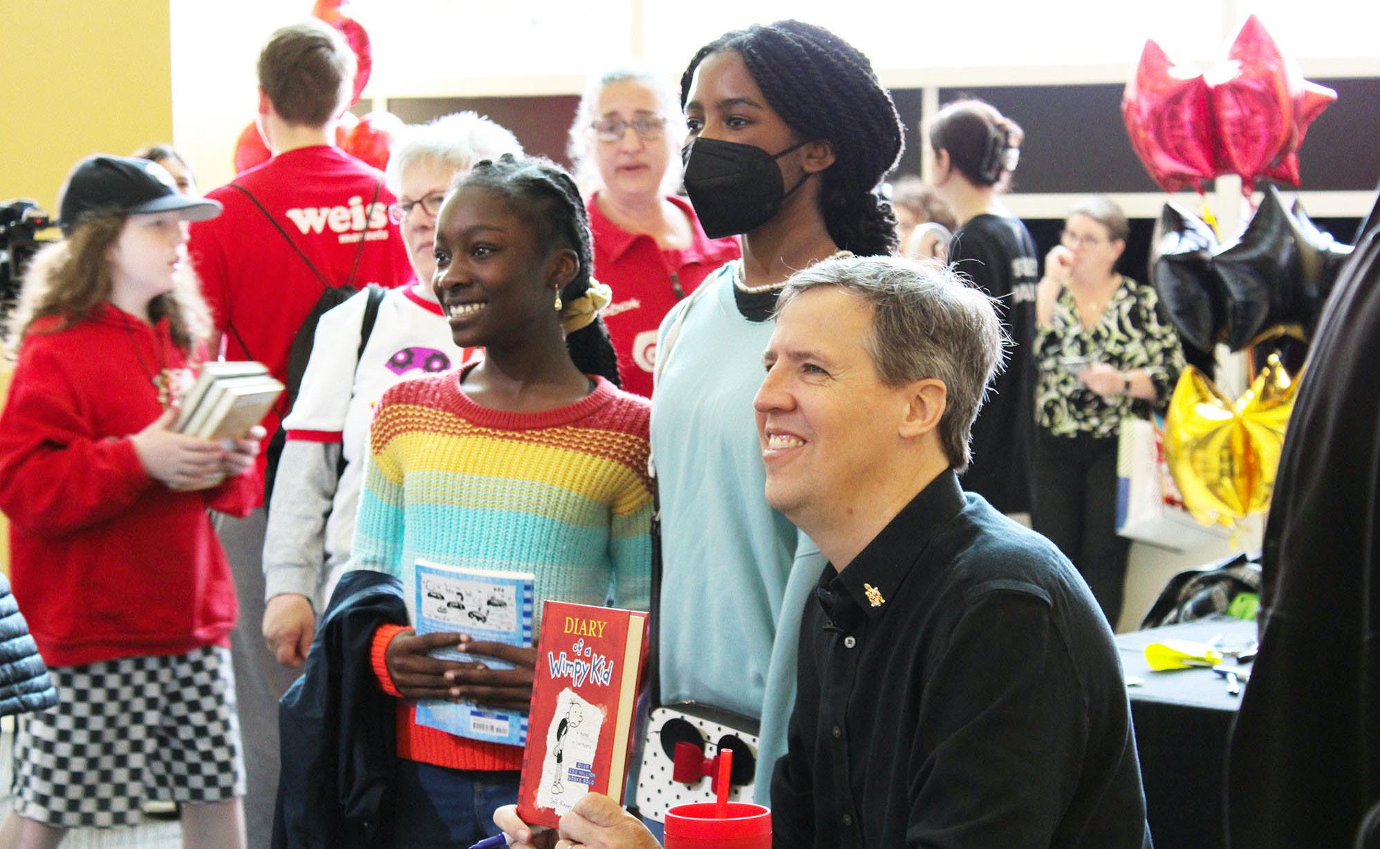 Fans of all ages jostled into the student union, shoulder to shoulder for a chance to see Kinney unveil the statue and get his signature.