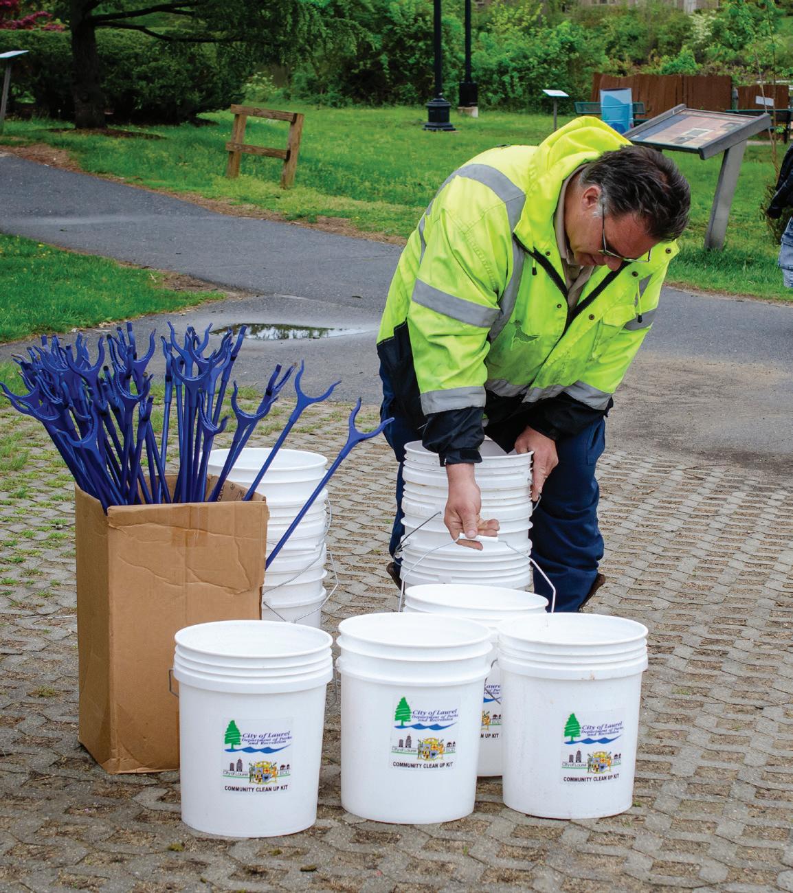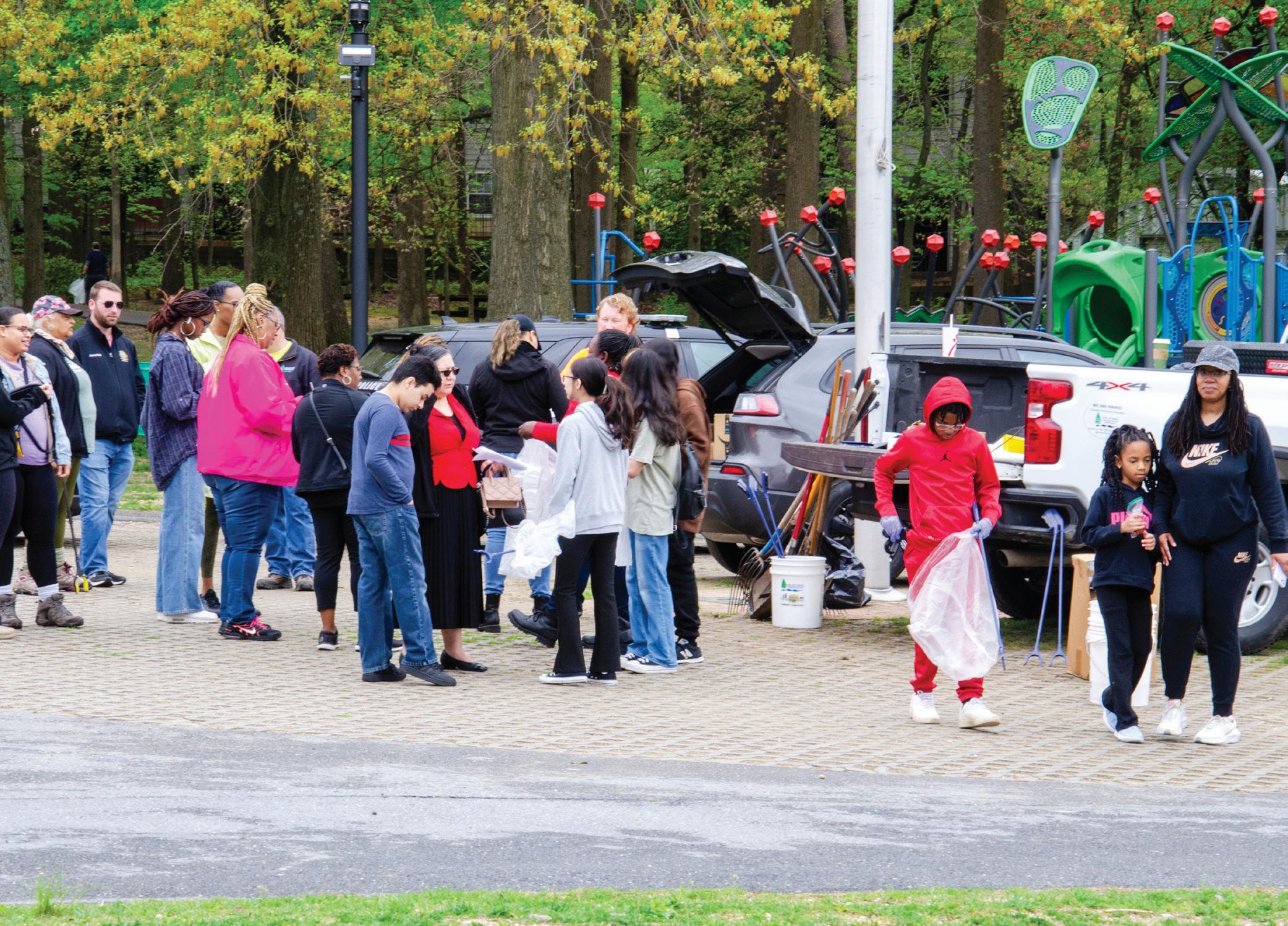 On April 20, volunteers gathered at Granville Gude Park as part of an Earth Day cleanup event hosted by Laurel Department of Parks and Recreation. More than 30 residents, along with volunteers from the Laurel Police Department, helped pick up trash around the park and along the waterways. They found a Christmas wreath, dog bowls and even some umbrellas in the debris along the trail and in the water.