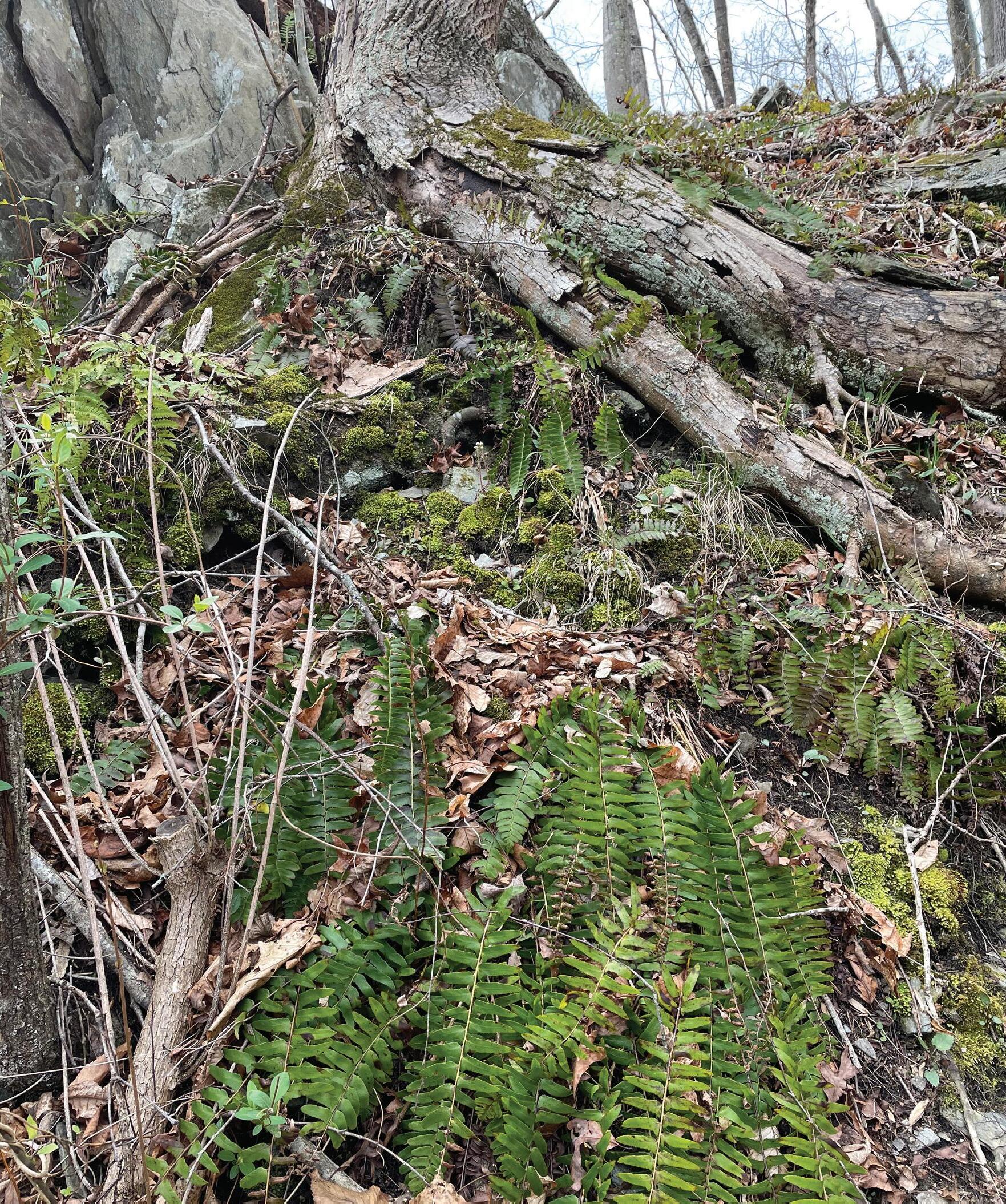 Within this group are also the semi-evergreen ferns. Marginal wood fern (Dryopteris marginalis) is a twice-cut fern that prefers moist shade. Christmas fern (Polystichum acrostichoides) is a bold, oncecut fern that can tolerate dry shade and is often found on rocky slopes. Keep in mind that non-native ferns are frequently sold at big