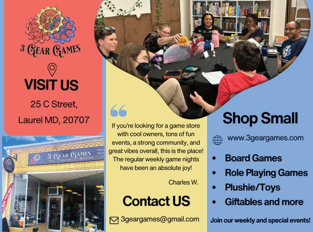 Laurel Historical Society’s 22nd Gala. LHS’ Speakeasy Soiree will feature musical performances, auctions and festive fare. Tickets $115. 5 p.m. Savage Mill, 8600 Foundry St., Savage. For more information call 301.725.7975 or go to tinyurl. com/2bep3nss