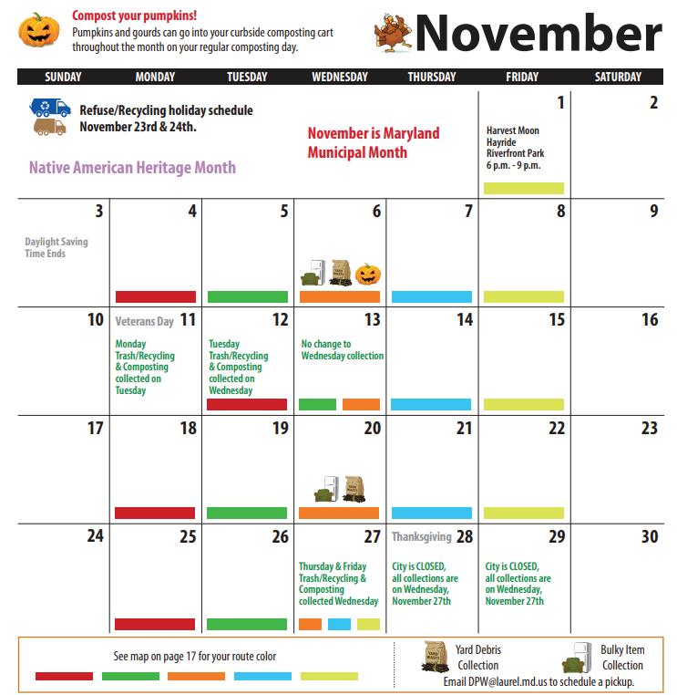 Nov. 1: Harvest Moon Hayride along the Patuxent River. Drinks, snacks and entertainment by a bonfire. $5. 6 to 9 p.m. Riverfront Park, Avondale St.