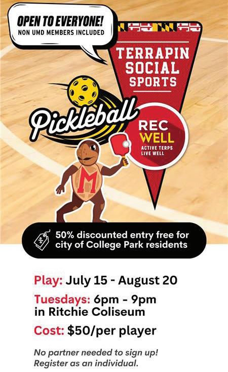 The Terrapin Social Sports program will add pickleball teams in July, according to Ju‑ lie Johnson, UMD’s assistant director for intramural sports and the Reckord Armory.