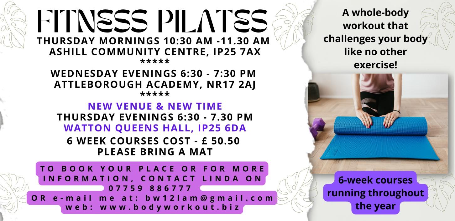 Fitness Pilates Thursday mornings 10:30 ‐ 11:30am Ashill Community Centre Linda on ‐ 07759 886777