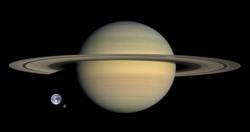 Here is Saturn with the Earth and Moon added for comparison.