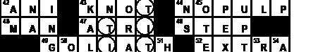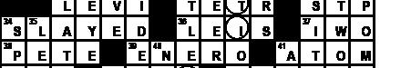 23. When the entire company of “Hair” appeared 45-Across on a dimly lit stage (2 wds.) (3,1)