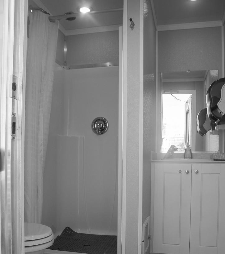 The trailer is fitted with three bathrooms with showers, including an accessible unit. It is designed to provide 20 showers during each stop, with organizers aiming to provide at least 1,000 showers in the first year.