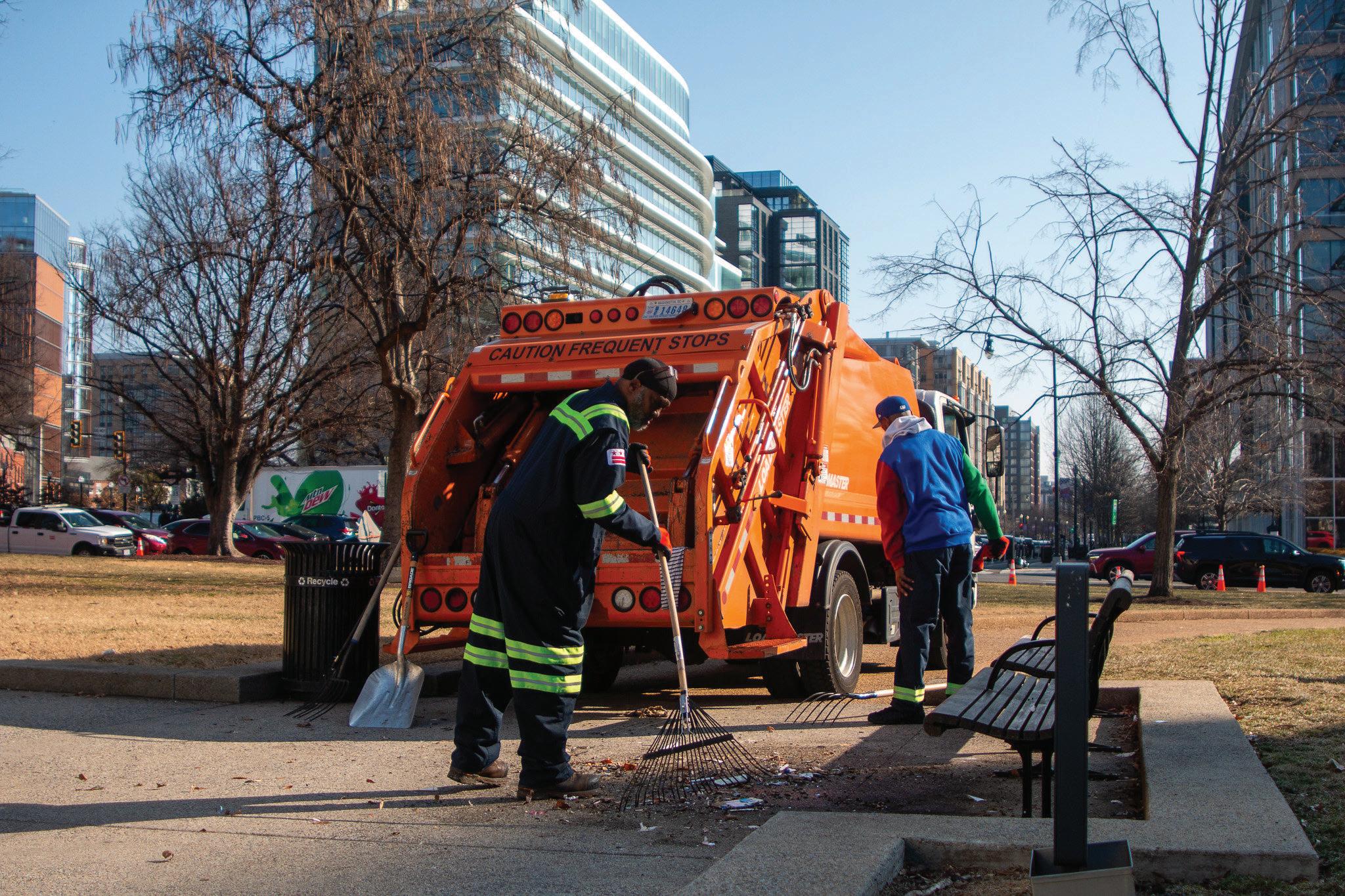 Within about 30 minutes of city officials arriving at the site, most people had cleared out of the area. Workers threw away whatever had been left behind and power-washed the concrete. Residents at the scene who spoke to Street Sense Media guessed most people would come back to the library later the same day, after the clearing was over.