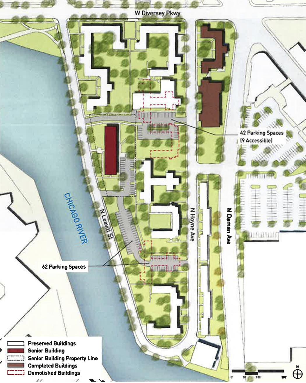 Preserved buildings Senior building Senior building property line Completed buildings Demolished buildings