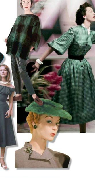 PAGE: Vintage looks in a cool green color palette (collage by Margaret Wilds).