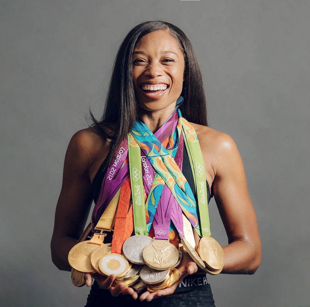 ACROSS FIVE OLYMPIC GAMES – ATHENS 2004 TO TOKYO 2020 – ALLYSON FELIX WON 11 OLYMPIC MEDALS, including seven gold, the most ever by a female track and field athlete.