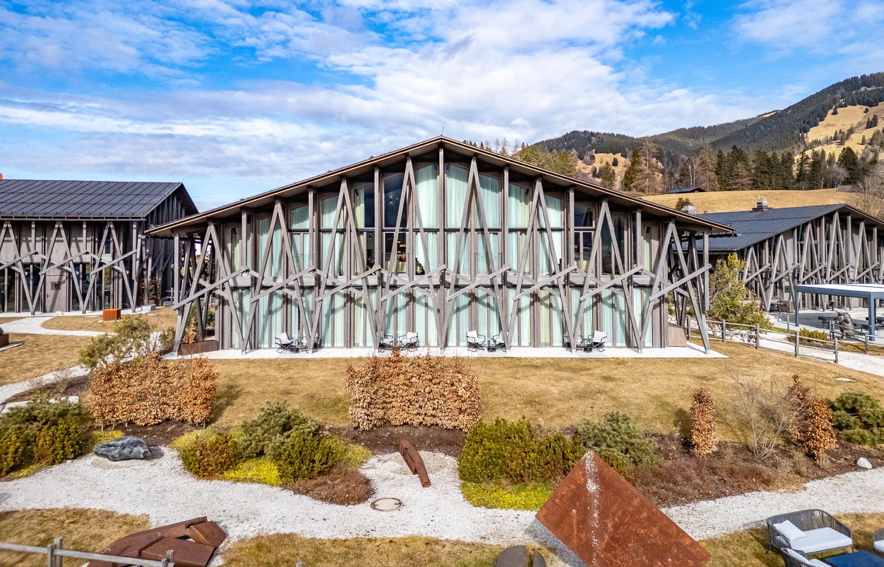 Im Stil eines Tiroler Schlosses erbaut, thront das Resort auf der Sonnenseite des Tals, direkt an einem der attraktivsten 9-Loch-Golfplätze Österreichs, auf einem Grundstück von 15.000m2. Mit seinen Türmen und Erkern aus Naturstein, dem Schindeldach und den hölzernen Fensterläden fügt es sich harmonisch in die Landschaft ein. Das Resort bietet 112 Zimmer und 38 Suiten mit modernstem Komfort und beeindruckender Aussicht auf den Wilden Kaiser und die legendäre Streif. Ob Golf, Ski oder Wellness – hier vereinen sich Sport, Genuss und Entspannung auf höchstem Niveau.