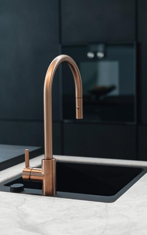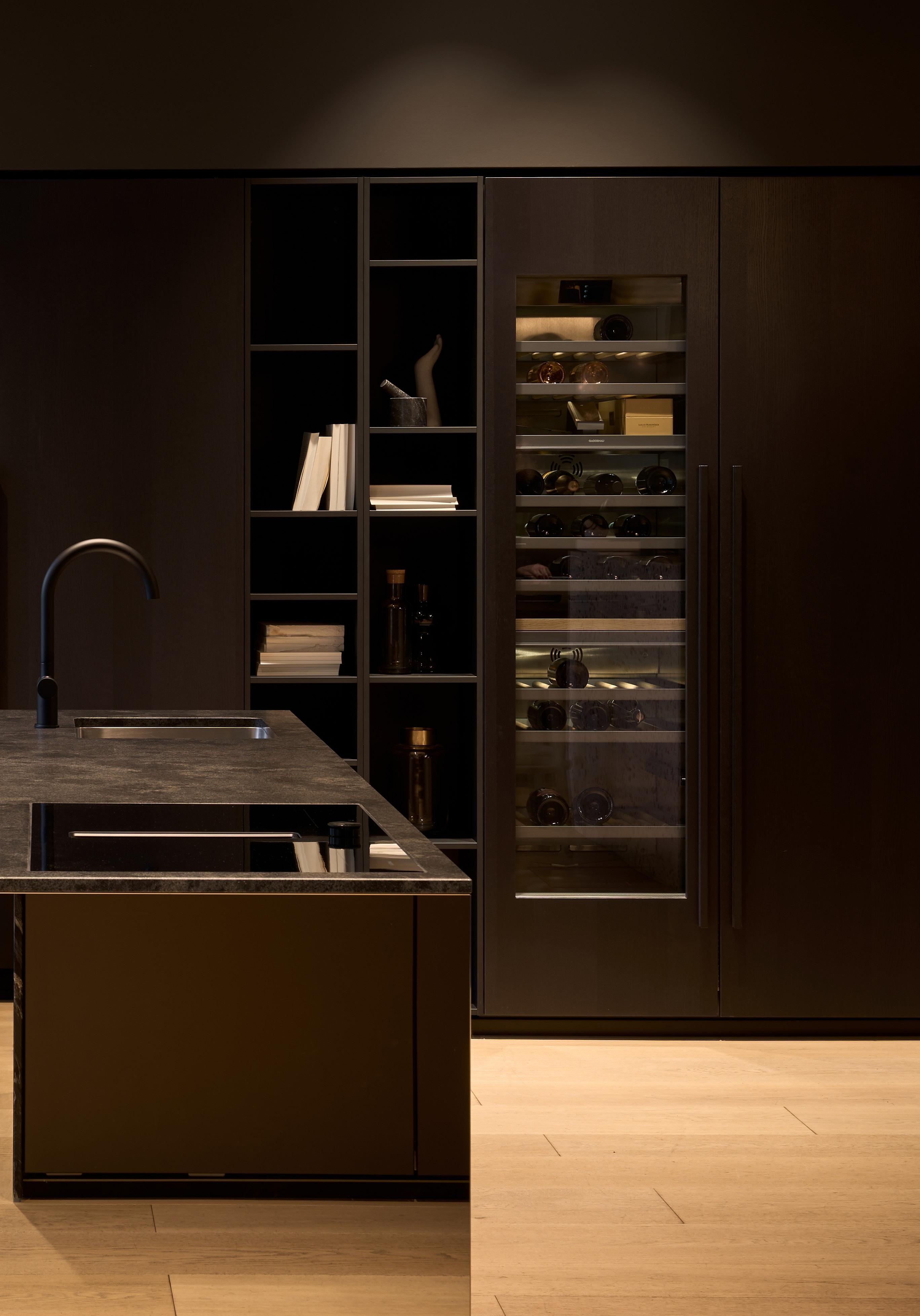 nieren und so verschiedene Perspektiven zu eröffnen. Ein zeitloseleganter Ort der Entdeckung für Kunden, Architekten und Designer bereithält. Neu sind zwei zentrale Kompetenzen: Mit dem Molteni&C Flagship Store wurde das Portfolio um hochwertige Küchen und Innenausbau erweitert. Die Marke Falper ergänzt das Programm um das Thema Bad. Beides sind Kollektionen, die fließend ins Wohnen übergehen.