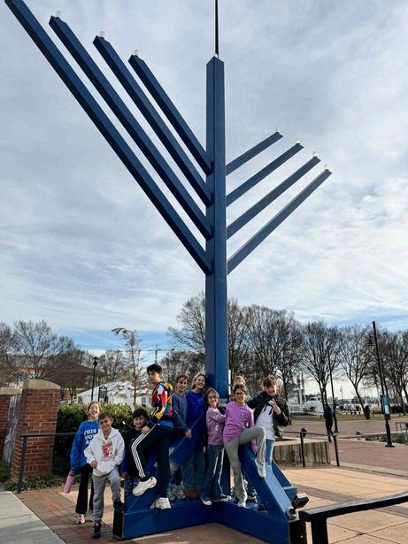 Fifth-grade students were curious about the local giant menorahs, so they visited the Mt Trashmore Menorah and the giant menorah near Waterside and Town Point Park in downtown Norfolk This experience was driven by student curiosity, reinforcing the IB® approach of student-led inquiry and authentic learning As part of the outing, students also visited Aviva Pembroke, where they sang for senior residents, strengthening intergenerational connections and demonstrating learning through meaningful community engagement.