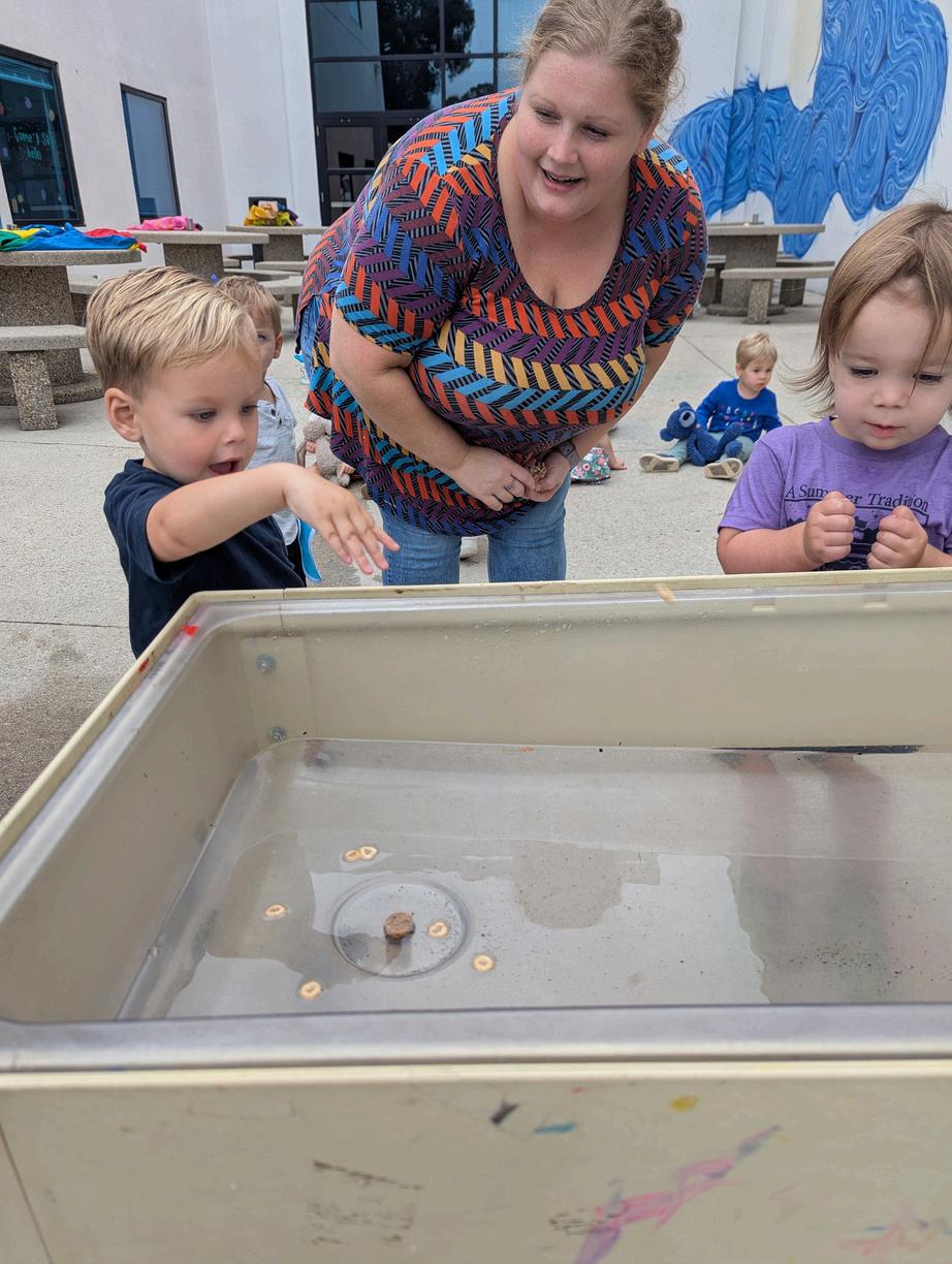 1.Toddlers Paxton S. and Declan M. take part in a toddler-friendly Tashlich activity alongside their teacher, Morah Katie.