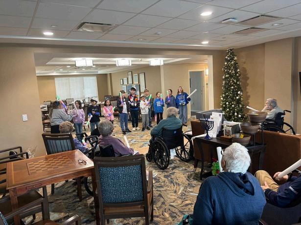Fifth graders sharing their voices and spreading Chanukah joy as they sing for the residents of Aviva Pembroke.
