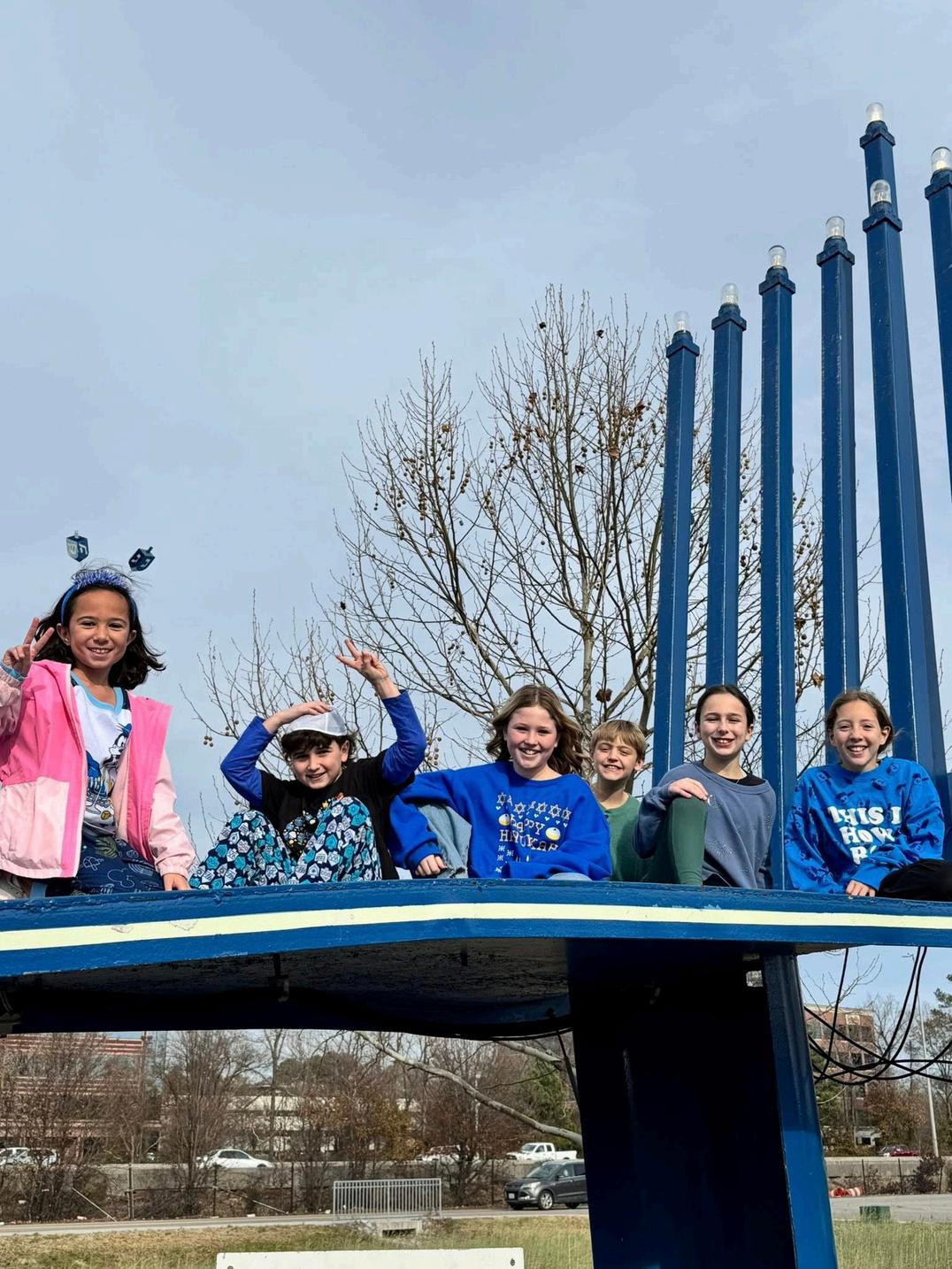When the fifth grade students demonstrated curiosity about Hampton Roads’ two giant Menorahs, they learned that their purpose is to help all people better understand the story of Chanukah. The fifth grader’s inquiry into the giant menorahs led to a special Chanukah field trip! The fifth graders, sporting their favorite Chanukah spirit wear, loaded the bus and headed off to visit the Mt. Trashmore Menorah The students learned about the menorah’s origins, purpose, construction and year round storage The students loved being able to climb up and sit on the bed of the menorah!