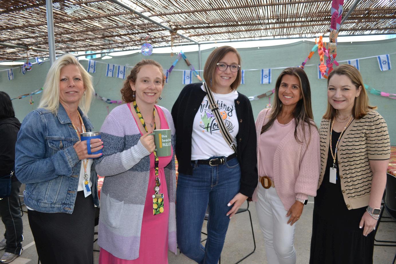 2. Heather Moore, Allison Graves, Jessica Laderberg, Pati Oliszewski, and Carin Simon enjoying time together at the annual PVO Breakfast in the Sukkah.