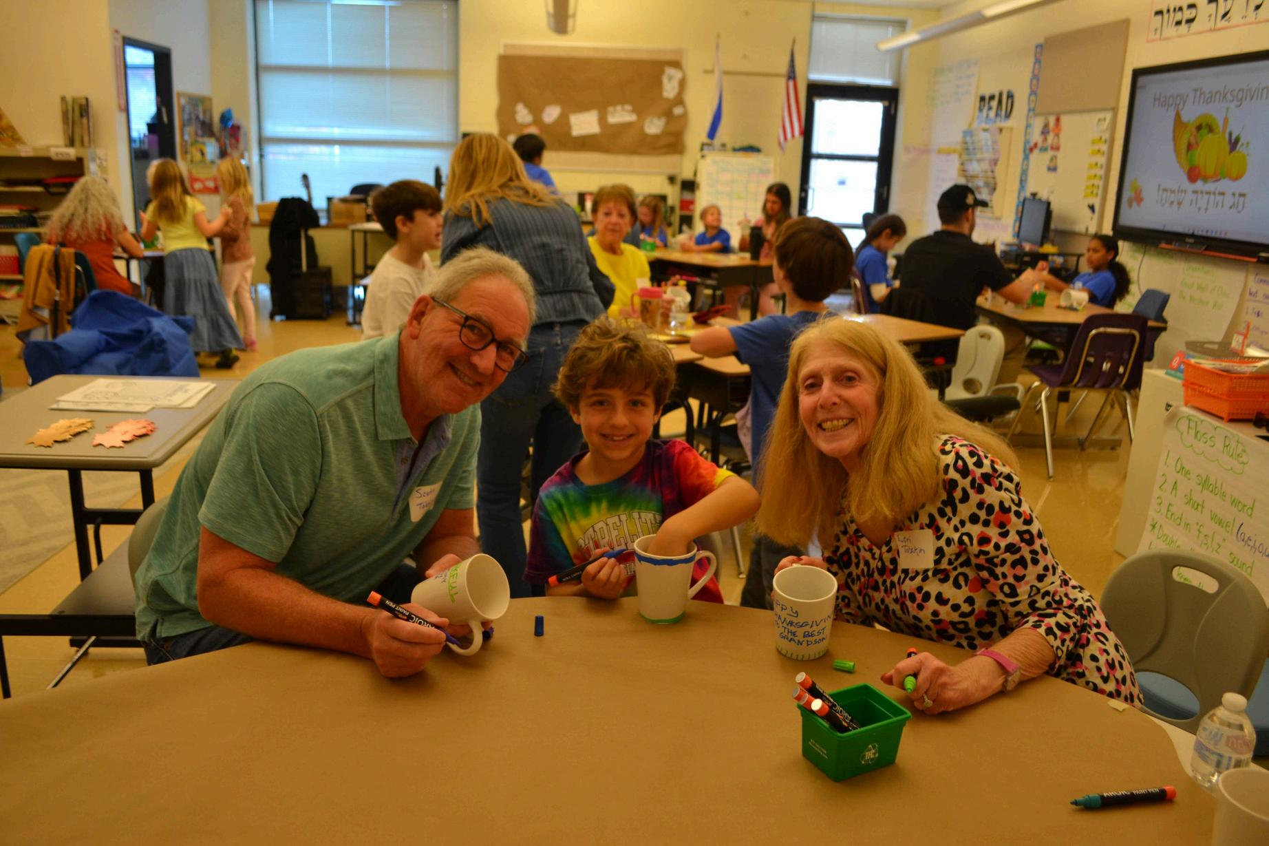 Benjamin T. and his grandparents having fun decorating mugs together in Grade 2. Strelitz International Academy 14