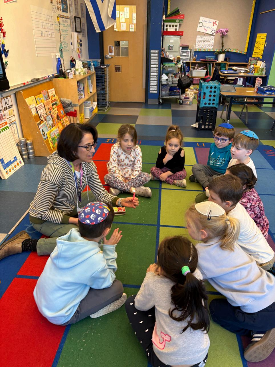 7. Kindergarten students explore the wonders of fire and light the Hanukkiah for Chanukah with Morah Jo.