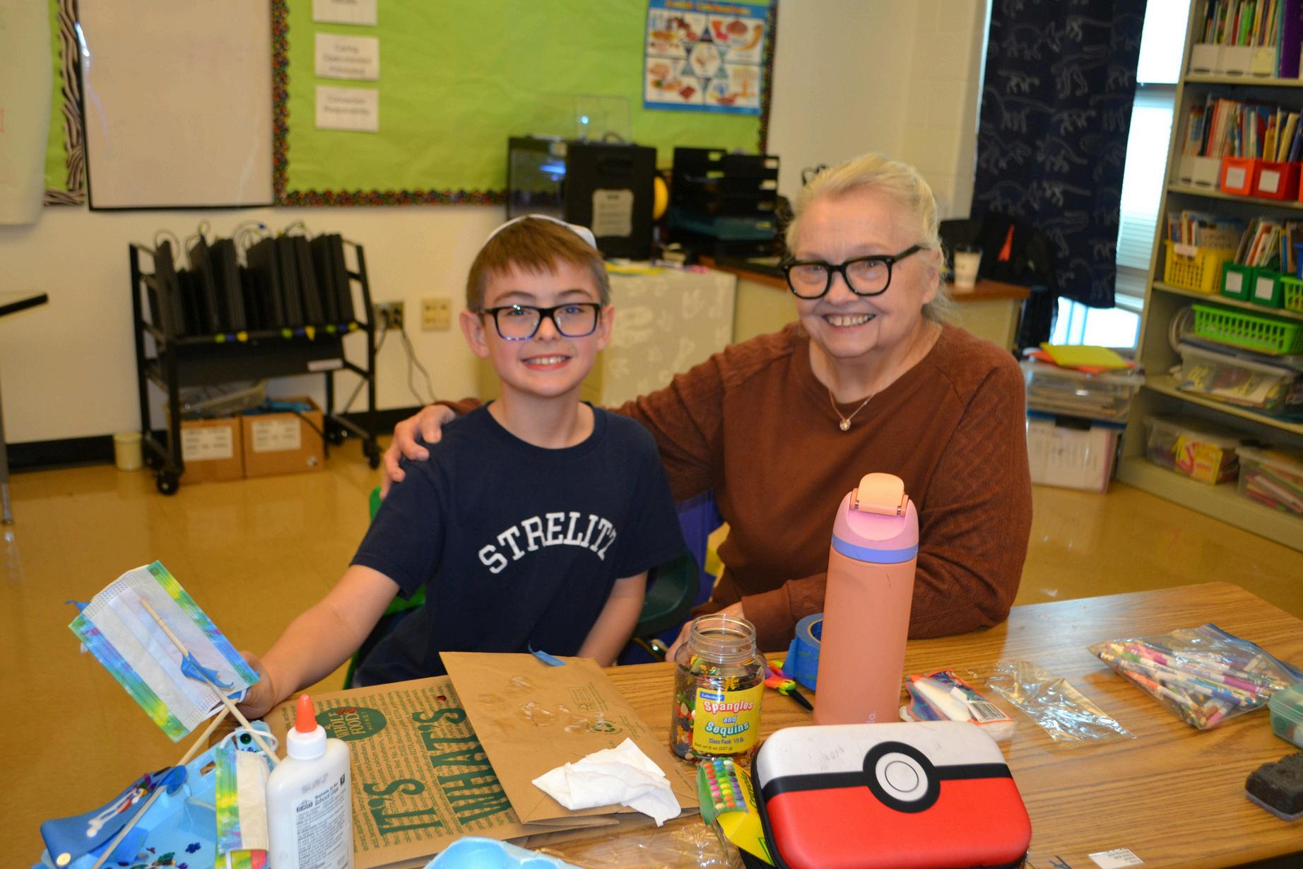 Thomas D. and his grandmother doing a STEM activity in third grade.