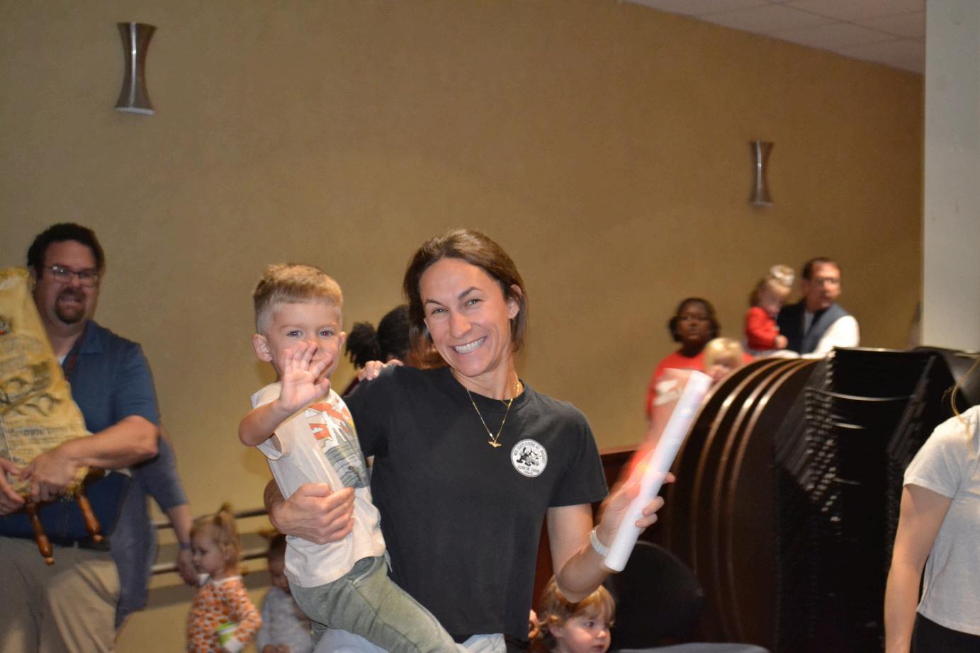 4. Nolan C. and his mother Leigh Casson dancing at the Early Years Havdalah and Simchat Torah celebration.