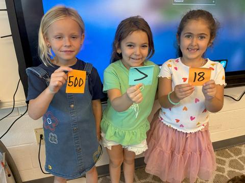 Bety H., Scarlett S. and Moria K. use their math skills to show their knowledge of values!