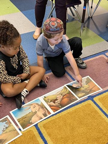 Shared rituals, like morning tefillah and opening circle, also follow a consistent sequence that builds comfort. For example, Morah Jacquie’s EY4 class begins with Mr. B’s Good Morning Song and transitions into tefillah with Noah Aronson’s Am I Awake. These small but reliable patterns help children feel calm, safe, and ready to learn.