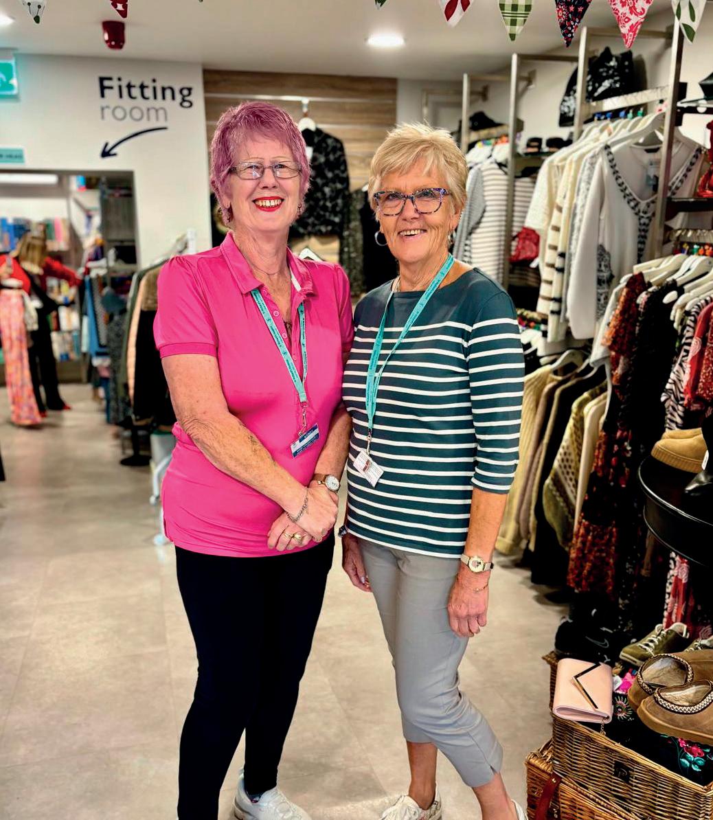 “After losing my husband Dave, I wanted to give something back to St Richard’s for the care we received,” says Sandy, pictured left, who volunteers at our shop in Barnards Green.