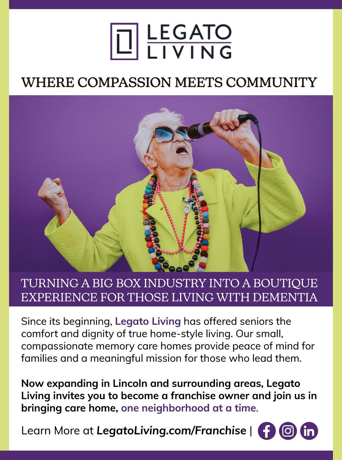 In addition to delivering high-quality care, Legato Living is helping others bring this model to their communities through franchising. While the Omaha metro is sold out, there are ownership opportunities in the Lincoln, Kearney, North Platte and Scottsbluff markets.