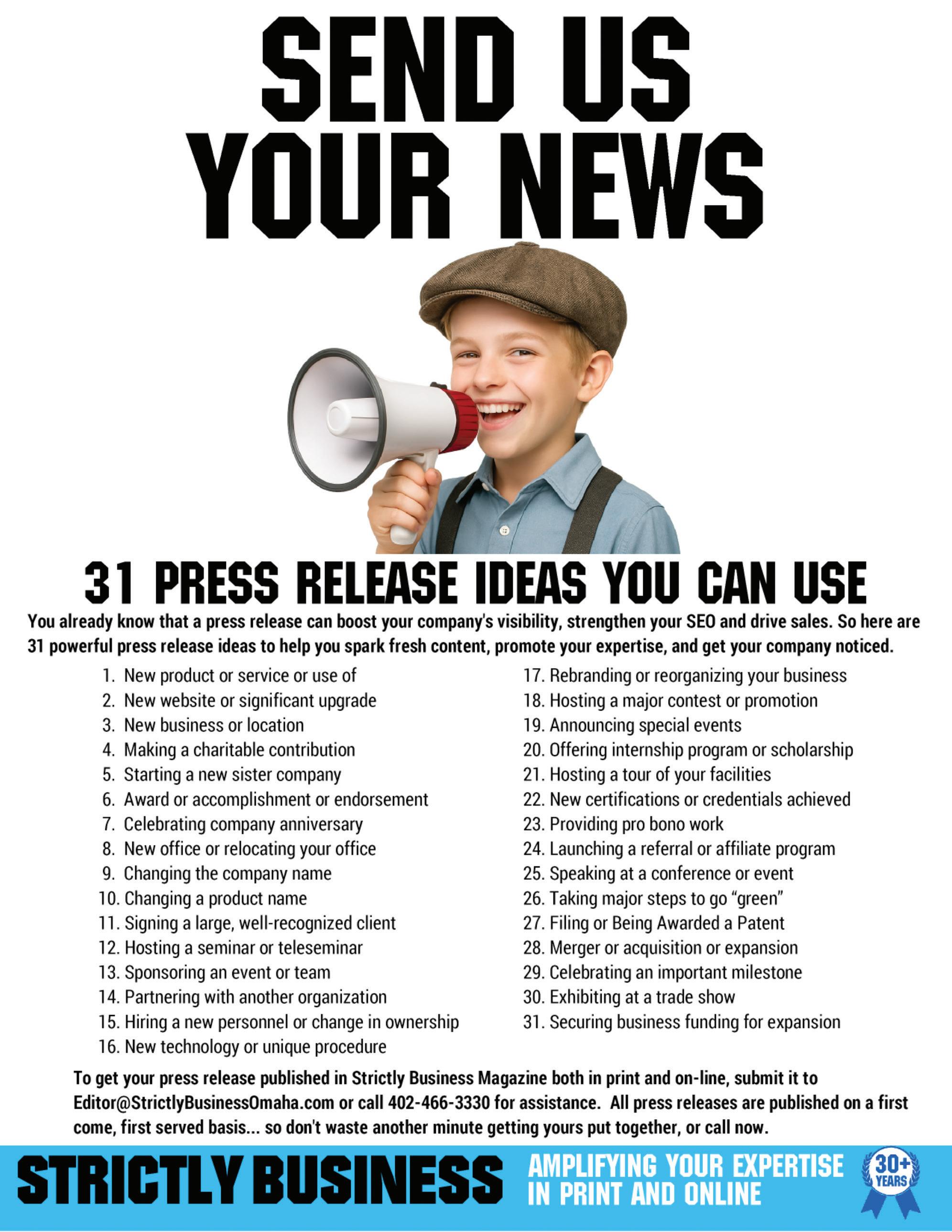 President/Sales: Paige Zutavern – Paige@StrictlyBusinessOmaha.com