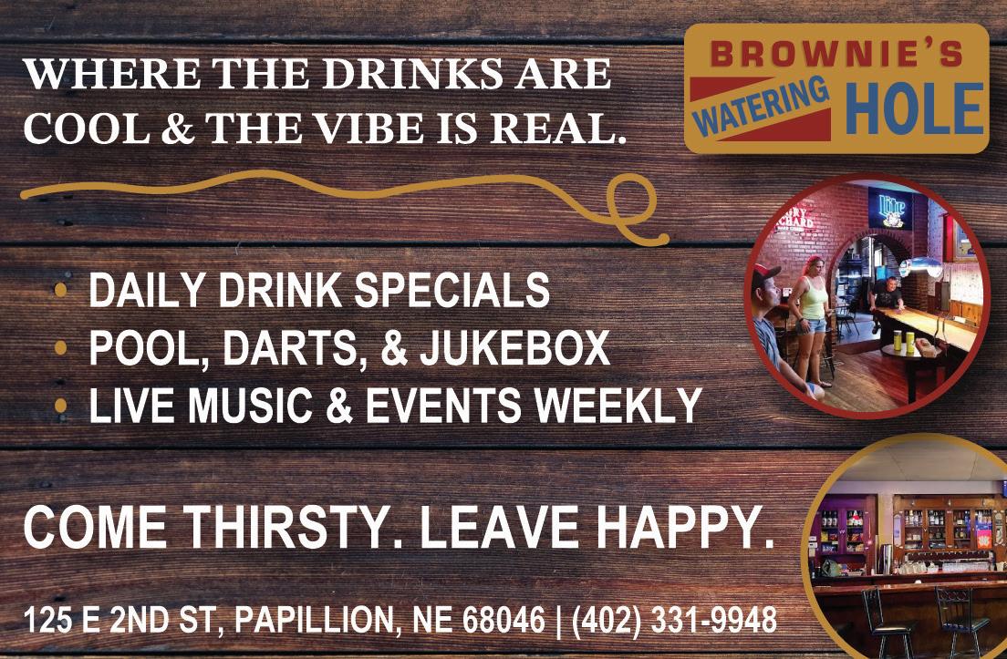 For more information, visit Brownie’s Bar & Grill in downtown Papillion, follow them on social media for menu specials and event updates, or call (402) 331-9948.