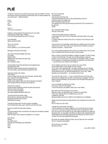 The power behind every movement, the spring for all airborne strides. Disobey the plié, May the body’s artful career be forgotten in an instant.