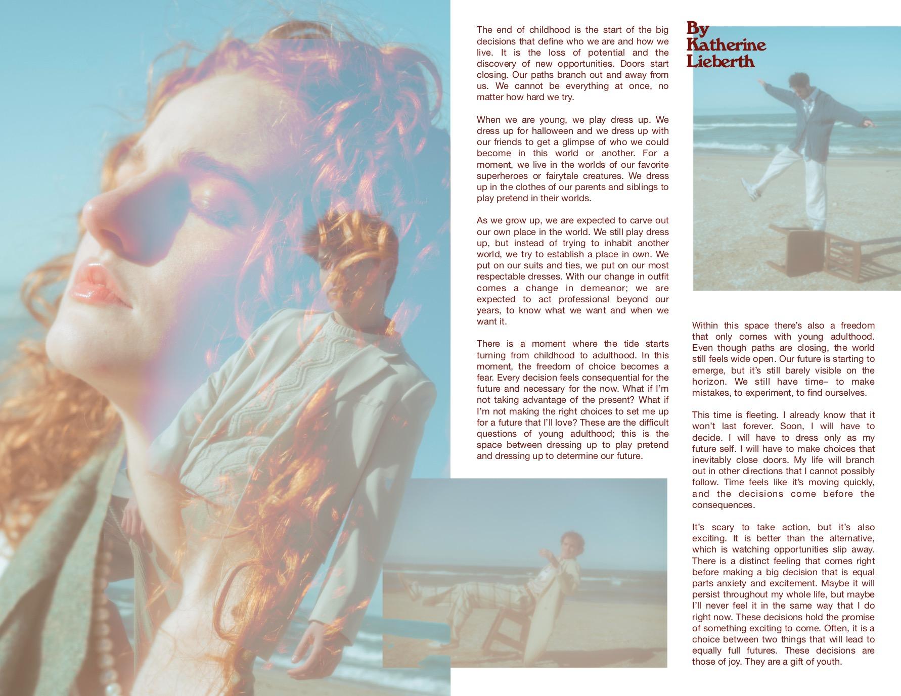 When I accidentally discovered Strike Magazine during my first semester at Notre Dame, I had no idea that I would end up here, working with the most incredible, talented staff to create a magazine that celebrates, alongside the fashion and writing and art, the people who made it. I feel unbelievably lucky to be part of this community, and, from beach days to rainy days, to help walk these brilliant collaborators through our tempest. Enjoy the magazine, and in the words of the great Prospero, let your indulgence set us free!