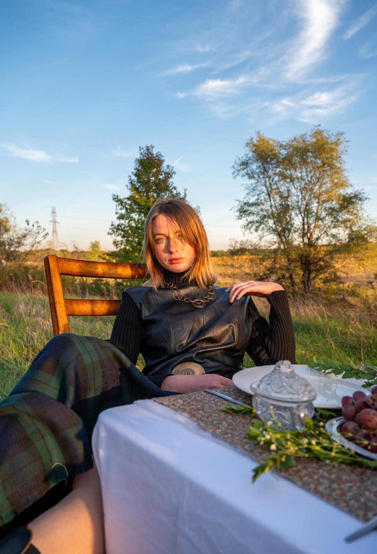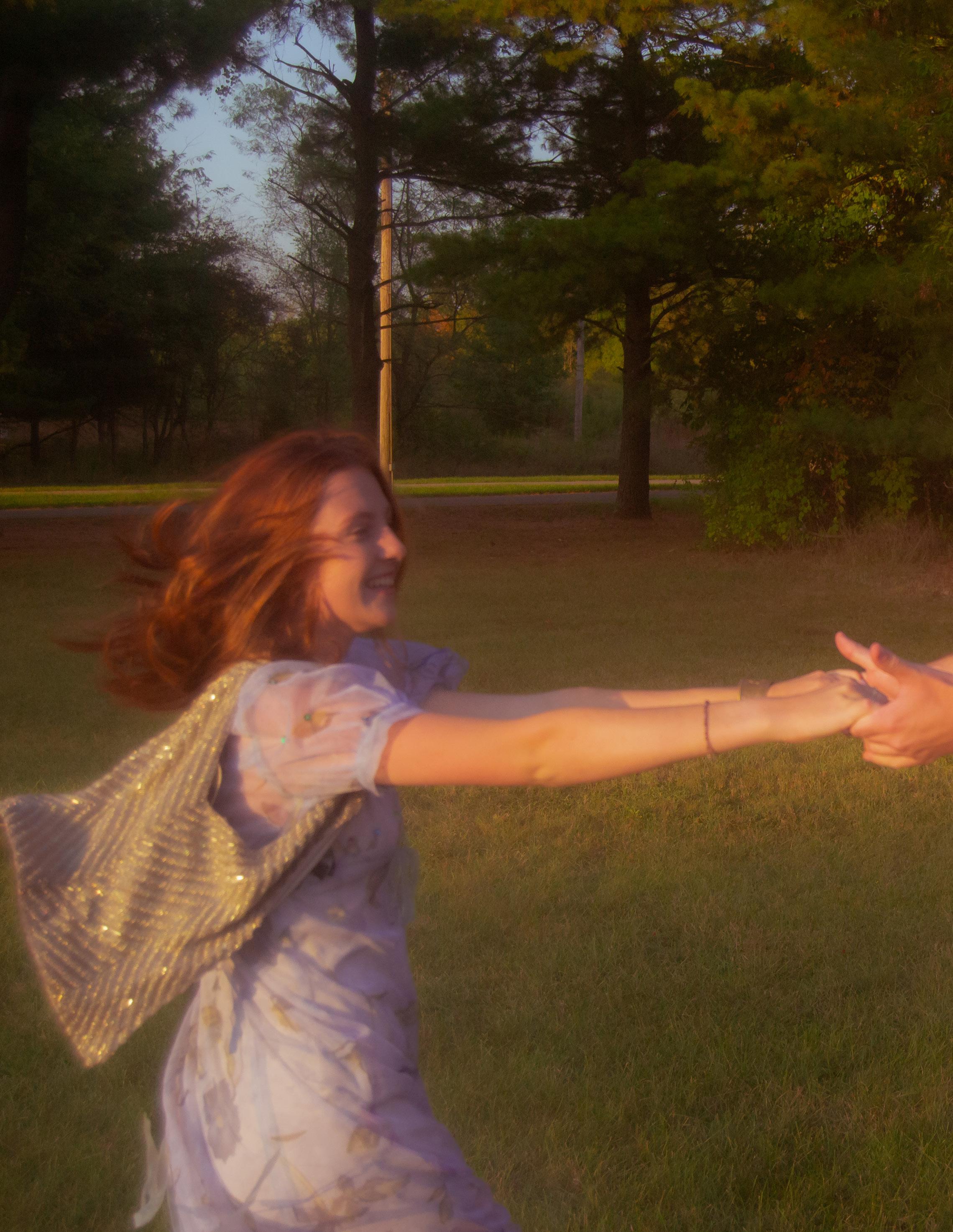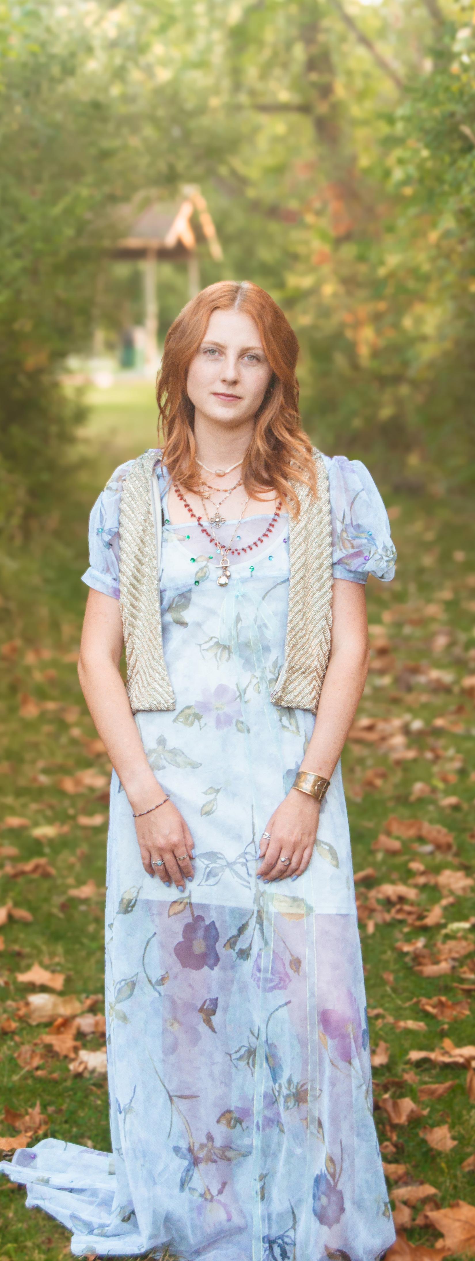 I stare into the rusty bronze mirror. A ladybug flies onto my hand — protection. This dress traces my figure like a wing stroking the air. Mother’s dress is a perfect fit, and she said my blonde hair bounces like hers used to.