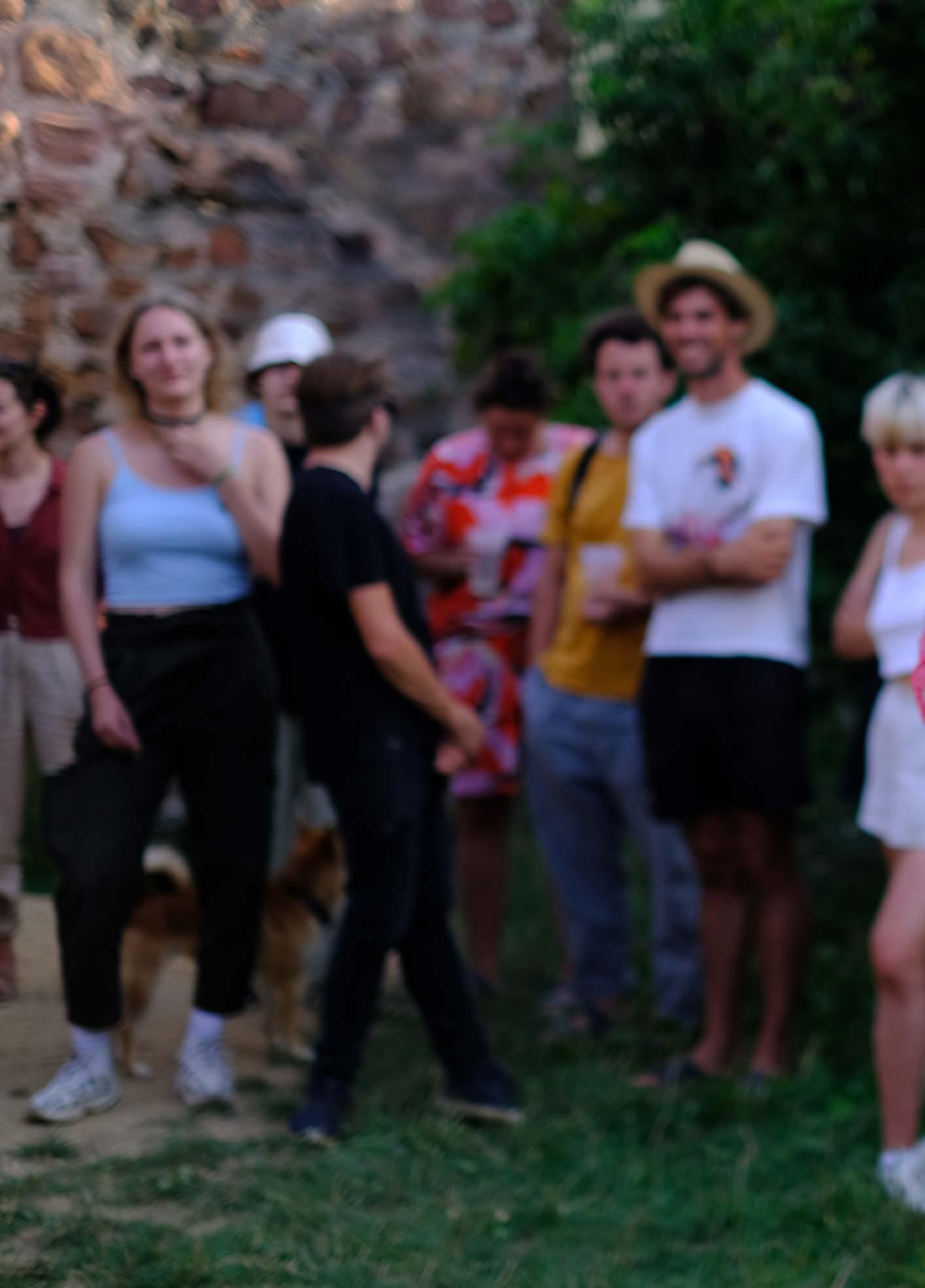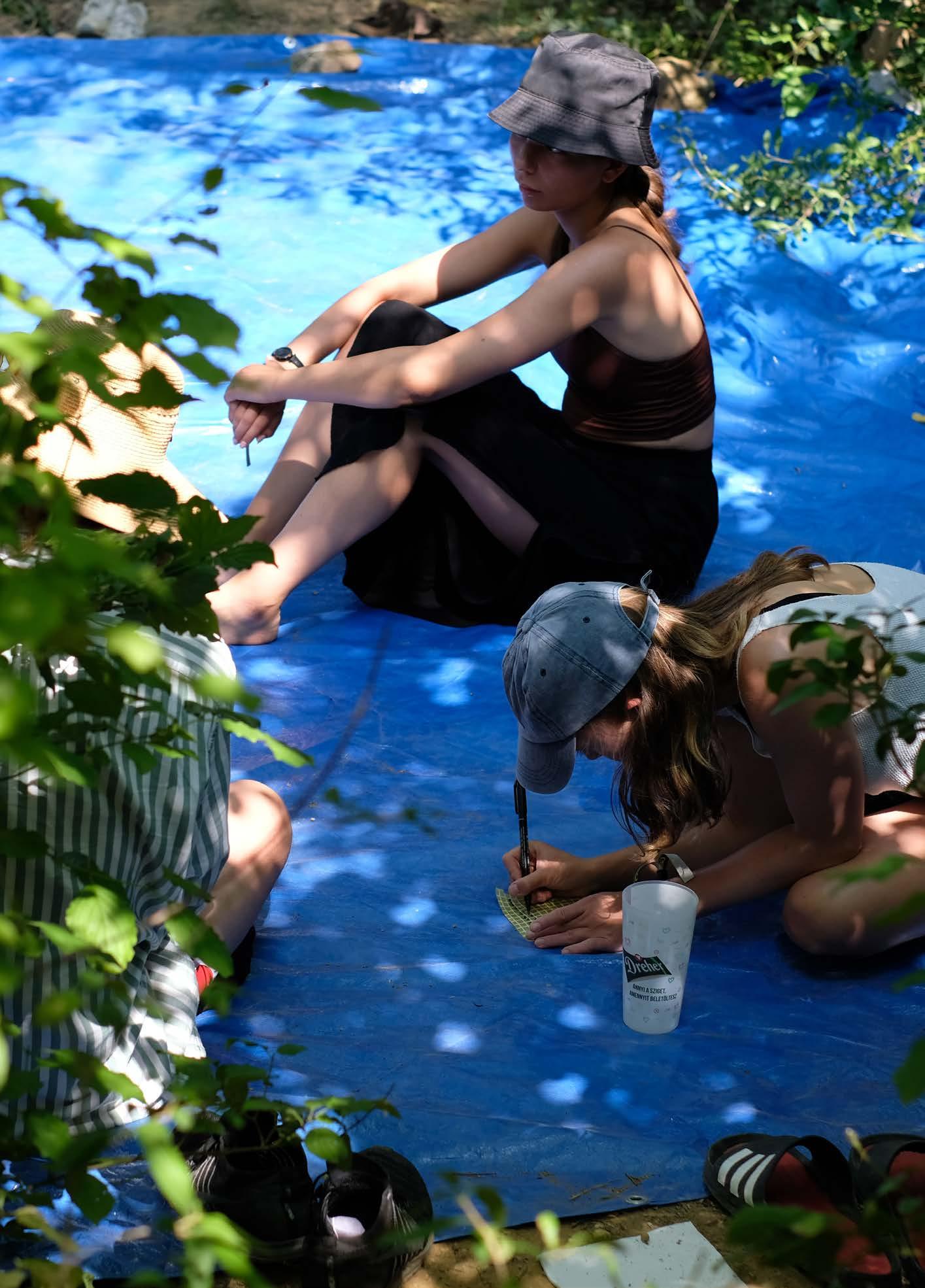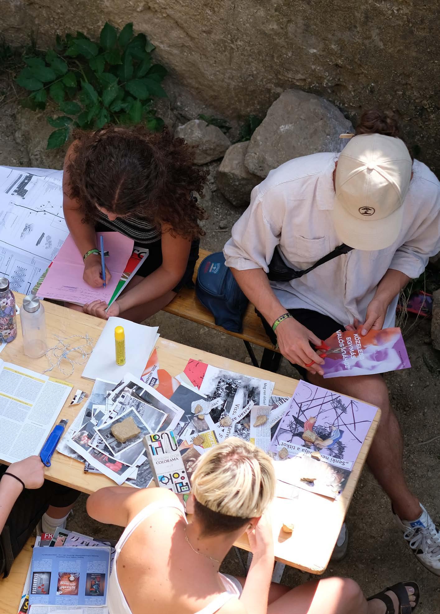 A Bástyán ülve Georg Simmel A Rom című szövegéről beszélgettünk, a műemlék, a romkocsmák, műromok és az eredetiség fogalmait boncolgatva. A Katonai gyakorlótéren David Graeber Bullshit munkák cikkét olvastuk el, és próbáltuk elhelyezni a saját mindennapjaink gyakorlatát ezen a tengelyen. A Várudvarban tartott nomád piknikezésen szóba került a digitális kapitalizmus mókuskereke is, ahol őszintén vallottunk gúzsban tartó világító függőségeinkről és a szabadulási kísérleteinkről is. Az utolsó napon a Tornyot lakta be a Kópia csapata. A posztapokaliptikus hangulatú műhelyben ülepedett le a hét alatt felgyülemlett bölcsesség. A montázs-rajz-írógép és fénymásolószalon egyszerre dolgozott a talált kulturális és természeti erőforrásokkal; a kivágott újságcikk és a sztyeppe pora egy platformra került a xerox üvegén. Színes oldalakra montázsoltuk a hét tanulságait és előkészítettük a Kópia zine-t.