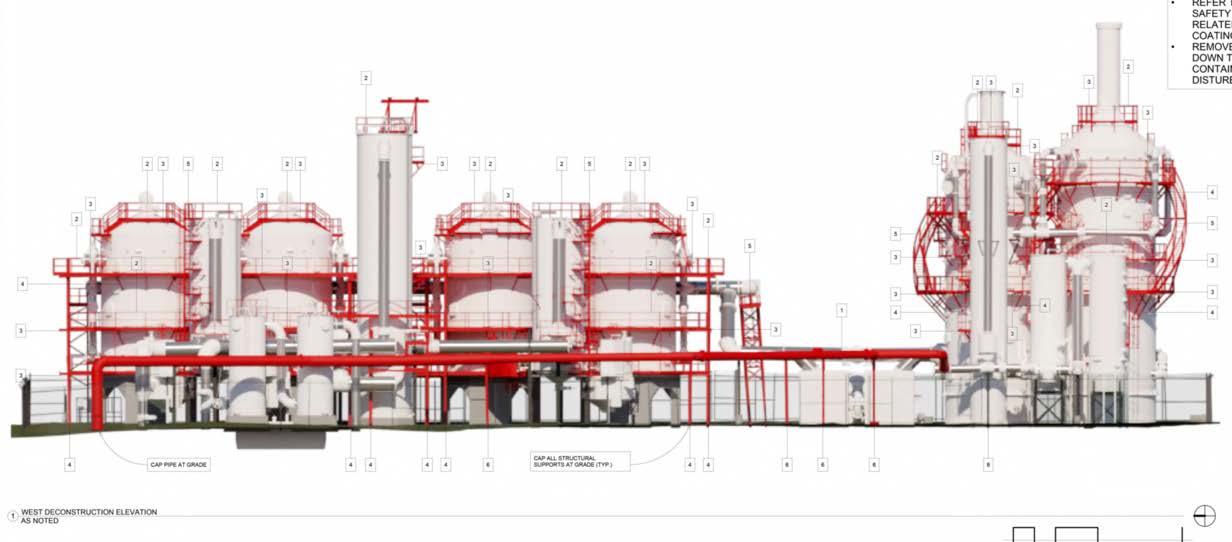the work was to prevent and discourage climbing access by removing ladders, catwalks, pipes, and other supporting elements.34