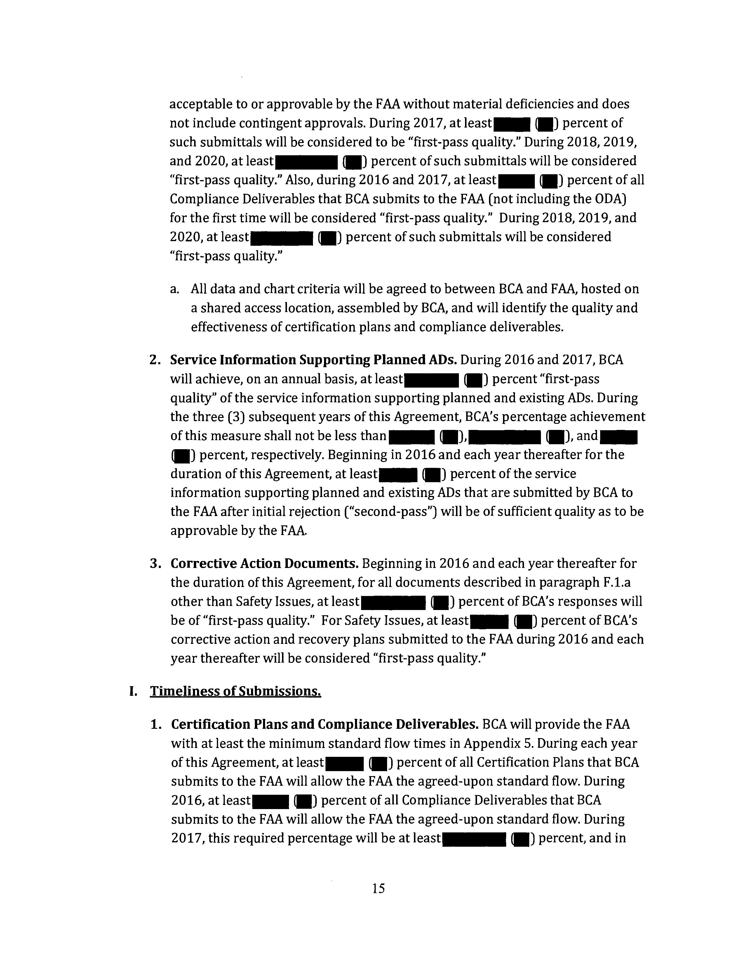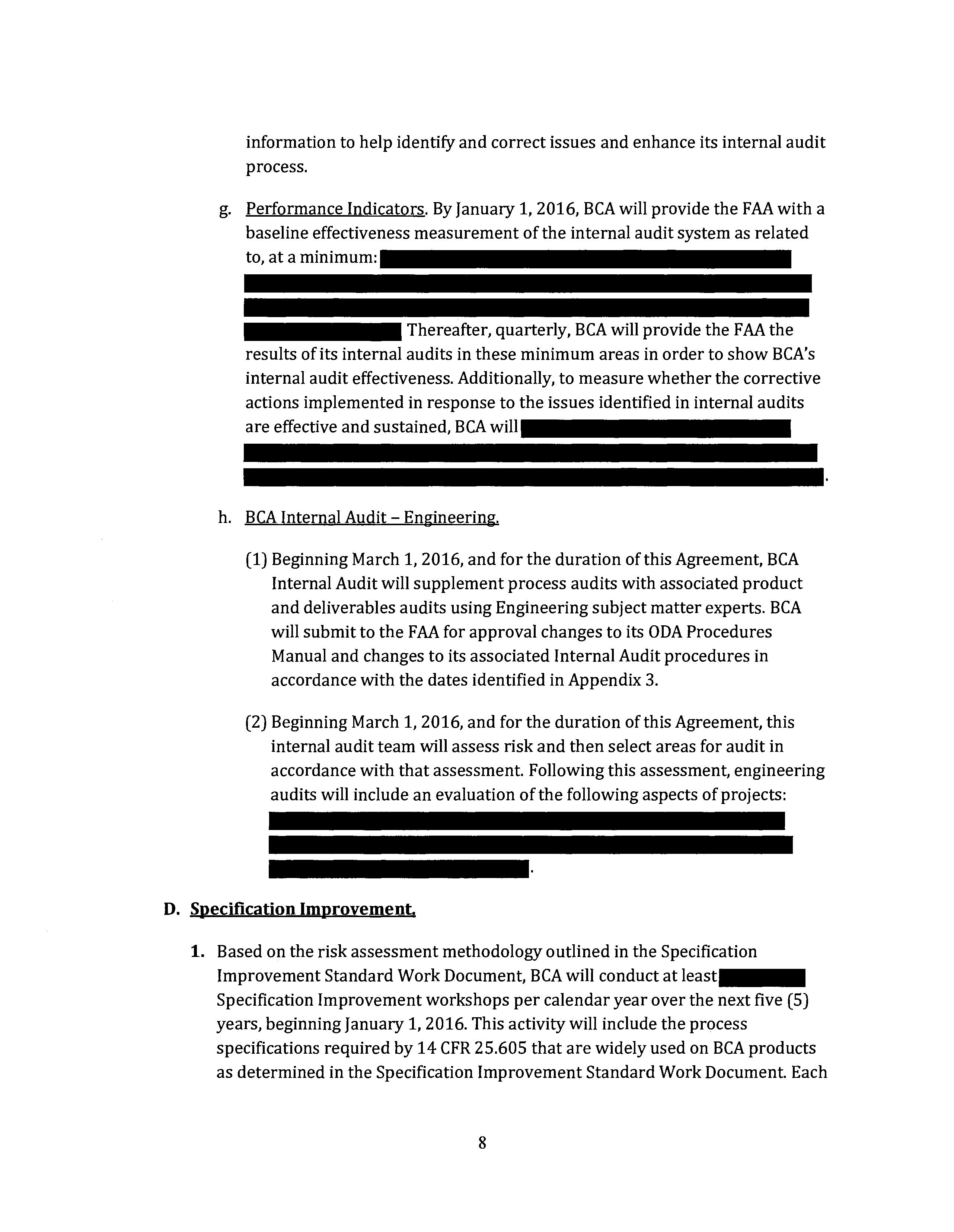 3.3 The 2015 FAA Agreement included mandated improvements in the areas of: safety management, regulatory compliance, internal audit for regulatory compliance, specification improvement, audits of its suppliers, and compliance reporting.